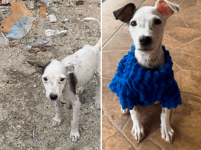When he was found, he was just skin and bones, abandoned among trash and fighting to survive. With food, care, and affection, he slowly recovered. Today, he is strong, healthy, and finally knows what it means to be loved.